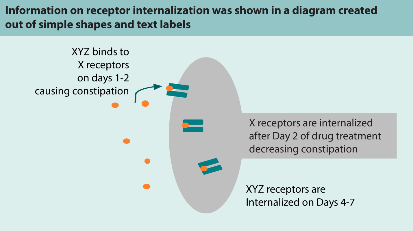 Multiple studies (Verdi et al ,1997; Patton, 1991) over many years have pointed to the effectiveness of the use of visuals in learning and retention. Of note, the use of illustrations or graphics presented together with short pieces of text are found to be most effective in learning. In the third step of our process, we consider which types of visuals are optimal in the delivery of our information. Visuals should aid, and not deter, from the information being presented. Specifically, if you were to remove any text accompanying the visual, the reader should still be able to get a sense of the information being conveyed.