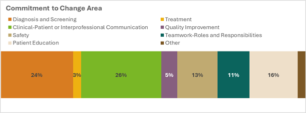 - Interprofessional Communication: 26% of participants planned to strengthen collaboration across care teams. One attendee shared a plan to create a mini-CE session workshop at their workplace to ensure all roles, from front desk to providers, understand how to flag and respond to trafficking.